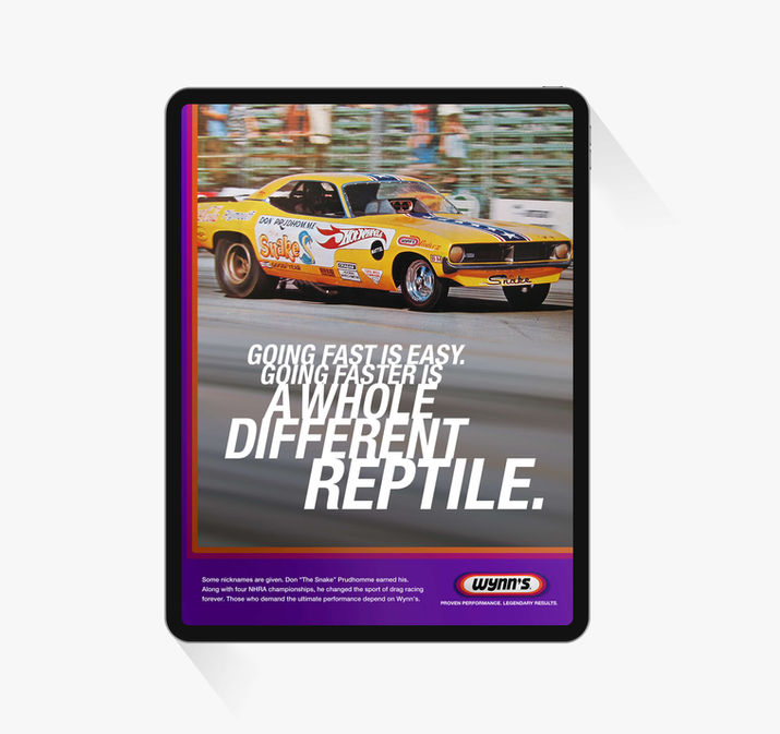After 80 years of winning everything from Le Mans to local drag strips, Wynn’s Engine Products and the groovy Wynn’s logo have become a part of popular culture. We reintroduced that colorful swagger to our B2B and B2C audiences, combining retro graphics with contemporary attitude to reinforce Wynn’s legacy of superior performance.